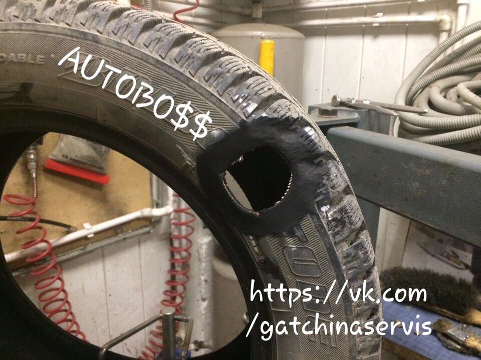 • Заделка специальной резиновой смесью всех имеющихся точек ремонта на шинах.