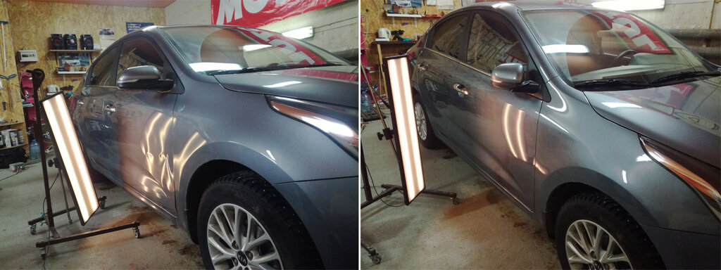 В ходе проведения ремонта кузова важную роль играют освещение и отражающие панели, с помощью которых мастер видит углубления и выпуклости вмятины, движения металла при нажатии на него. При работе мастерами «АвтосервисПрофи» используются флуоресцентные и светодиодные лампы, позволяющие безошибочно различать цветовые гаммы автомобиля.