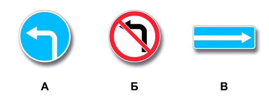 MORPHEY (г.Санкт-Петербург) Знак «А» поворот налево запрещает, а вот разворот — нет. Знак «Б» — запрещает только разворот. Знак «В» — разрешает только разворот — поворот налево запрещен. Таким образом правильный ответ — Только А и В.
